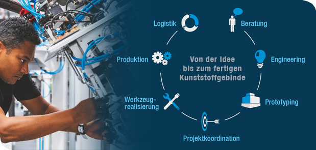 Die Beratung unserer Kunden beginnt bereits in der Entwicklungsphase des Produktes. Die spezifischen Anforderungen an Gebinde oder Flaschenkasten werden gemeinsam erarbeitet. Die daraus resultierenden Ideen werden als 3-D CAD Simulation inhouse umgesetzt. Der Entwicklungsprozess wird solange fortgeführt, bis für den Kunden die beste Lösung gefunden ist.
